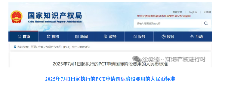 向国家知识产权局提交且收到日在2025年7月1日(含当日)之后的PCT申请的国际申请费,以及收到日在2025年7月1日(含当日)之后的PCT国际初步审查要求的手续费,适用本标准。