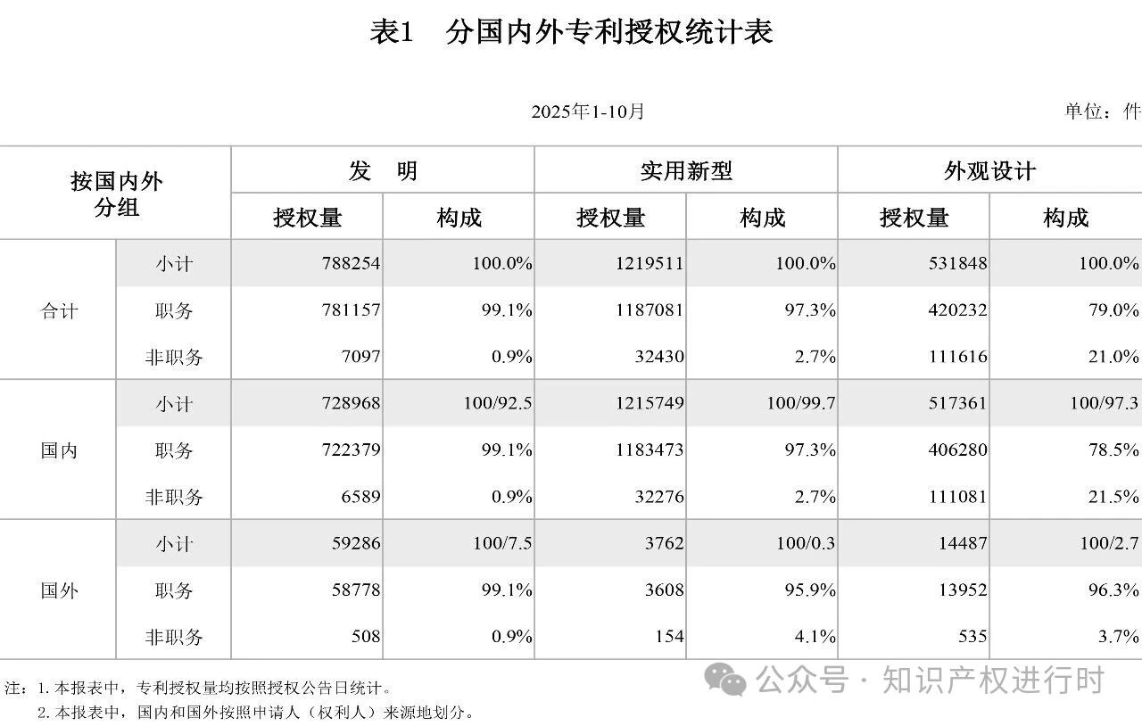 今日,国家知识产权局网站公布2025年1-10月的知识产权主要统计数据;与2024年同期对比: