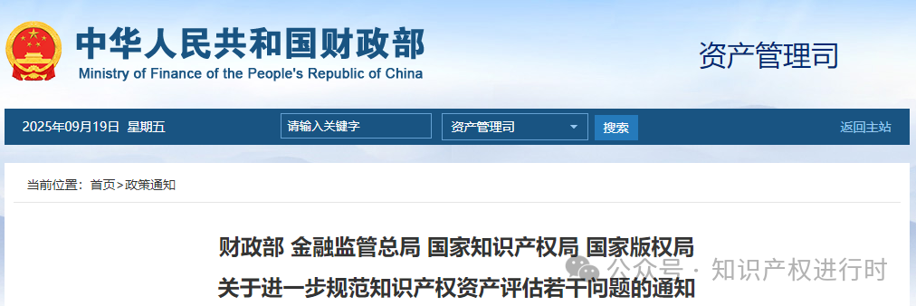 9月18日,财政部网站发布《财政部 金融监管总局 国家知识产权局 国家版权局关于进一步规范知识产权资产评估若干问题的通知》其中提到: