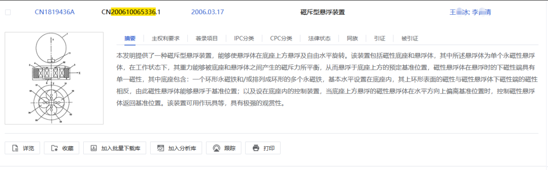 3.国家知识产权局于2024年4月24日作出第568217号无效宣告审查决定(以下简称第568217号决定)。该次无效程序中的证据1为本案中的证据2-3,该案中的证据2公开了一种用环状磁石让物体静止在空气中的方法,其悬浮体为单一磁石,且下端极性与下部的磁环上端极性相反,磁石与亚克力管内壁一某点接触,“悬浮”于管内。该决定认为:证据1和证据2均为具有各自完整方案的磁悬浮装置,具体结构差异较大,在证据1的基础上,即便本领域技术人员能够意识到要简化结构,由于证据1的多个部件相互关联协同作用,而证据2本身仅由三个部件组成简单、完整的装置,本领域技术人员仅选择某些结构对证据1进行改进,改进后的技术方案可能无法实现原本的功能,且得到的方案也非本专利的技术方案。事实上,通常认为两个磁体相对的一端磁性相同才能产生相互的斥力,而磁性相反才能产生吸力,即使存在部分现有技术公开了一方磁体为环形磁体的情况下,两个磁体可以产生一定的斥力,也无法证明前述权利要求1和证据1之间的区别技术特征属于本领域公知常识。