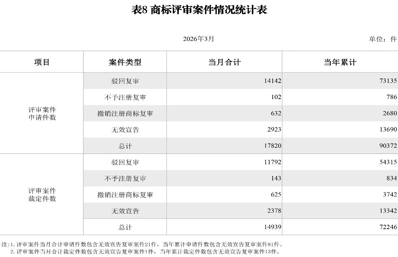 2026年3月国家知识产权局审查注册登记统计月报 全文